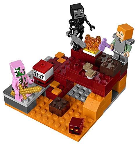 このレゴマインクラフトセットには、アレックスとマインクラフトのゾンビピッグマンの2体のミニフィギュアと、枯れたスケルトンと小さなマグマキューブのフィギュアが含まれています。