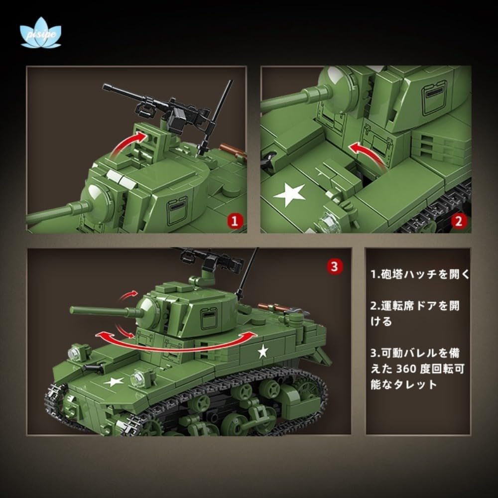 【新品未開封】テクニカルミリタリータンクモデル、スチュアート軽戦車 ミリタリーシリーズモデル、レゴと互換性のあるモデル玩具 (A) (D)