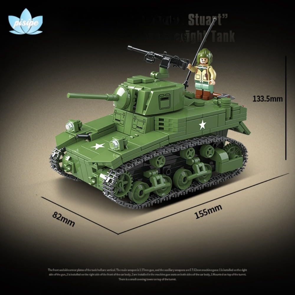 テクニカルミリタリータンクモデル、スチュアート軽戦車 ミリタリーシリーズモデル、レゴと互換性のあるモデル玩具 (A) (D)
