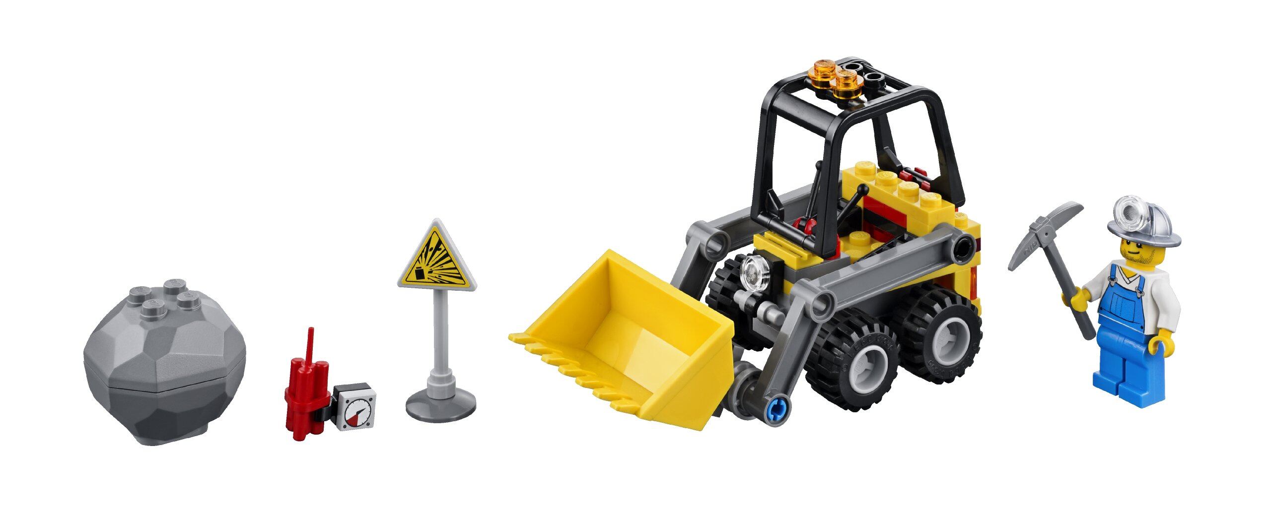 Product Description Transport the gold out of the mine with the Loader and Tipper Mining for gold is hard work Luckily the miners have the Loader and Tipper to help transport the big rocks from the gold mines. Help them use the dynamite and hatchet to find the hidden gold Includes 2 miner minifigures.