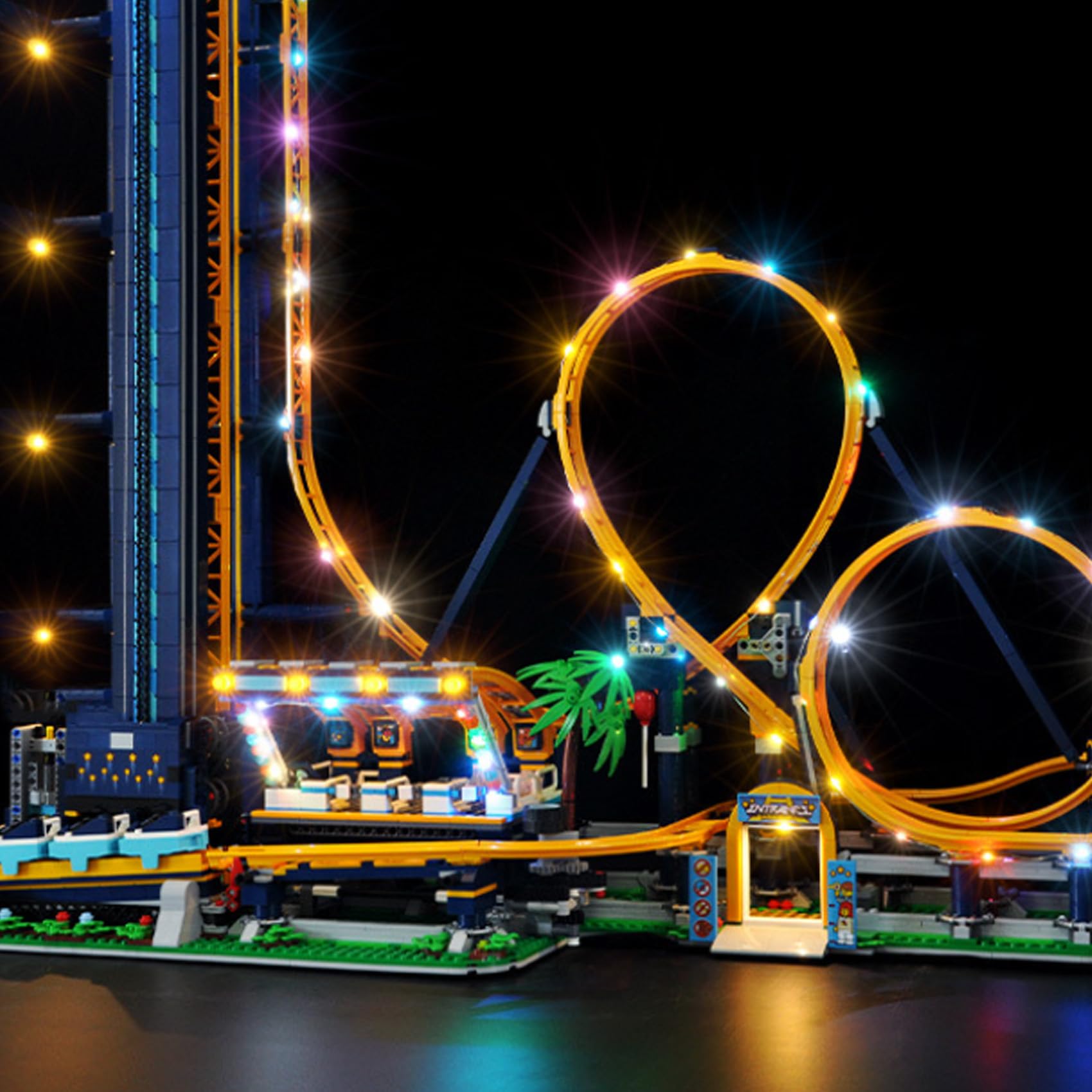 レゴ10303ジェットコースターモデル用に設計されており、特別にデザインされたライトキットの組み合わせでカラフルなディスプレイを作りましょう。 暗闇でモデルが魅力的に輝き、生活に彩りを添えます。