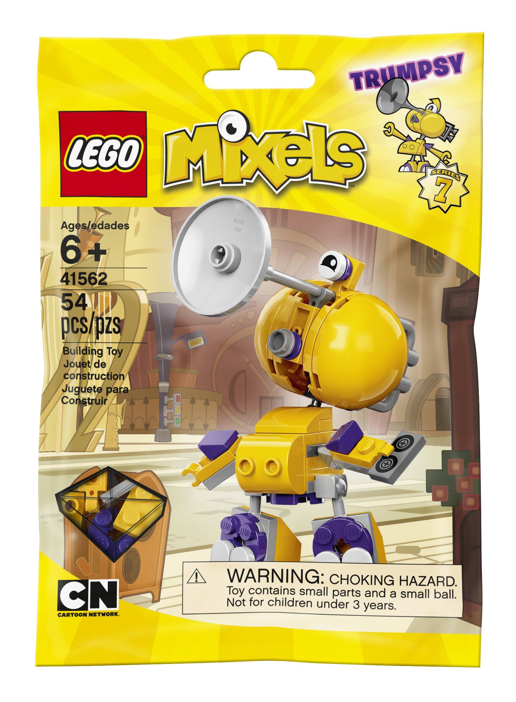 レゴ ミクセル シリーズ7 41562 トランプシー ミックスオーリンズから来たこのミクセルは頭がトロンボーンになっていて、大きなほっぺたを使って力強い音を出すよ。トランプシーが演奏していると街中のみんなが聞こえるんだ!音楽コレクションを誰にも盗まれないようにね。