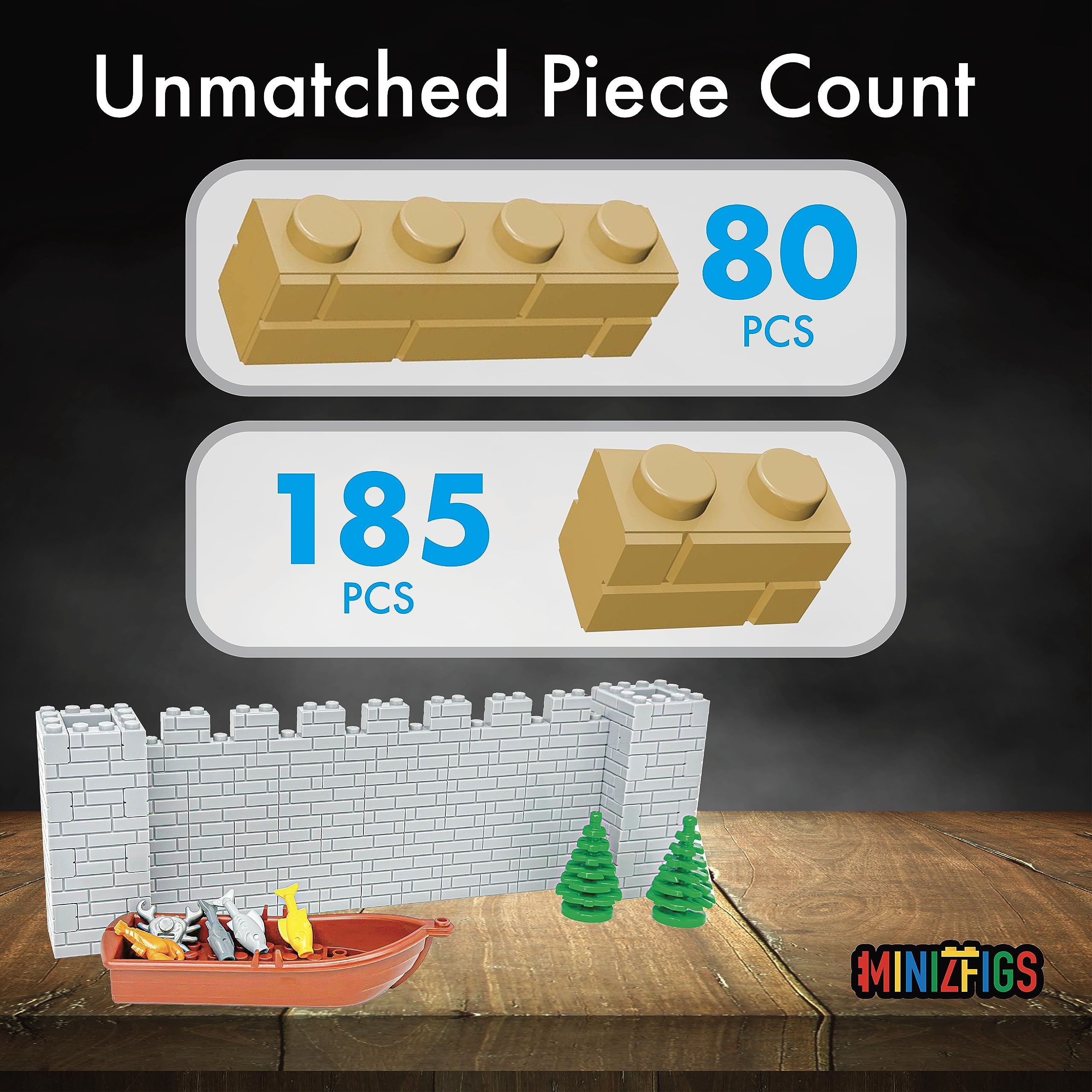 265ピース タン石積みプロファイルブロックセット バルクレンガ壁パーツとピース用 都市城 中世 レゴブロックを含む主要な建物玩具ブランドと互換性あり