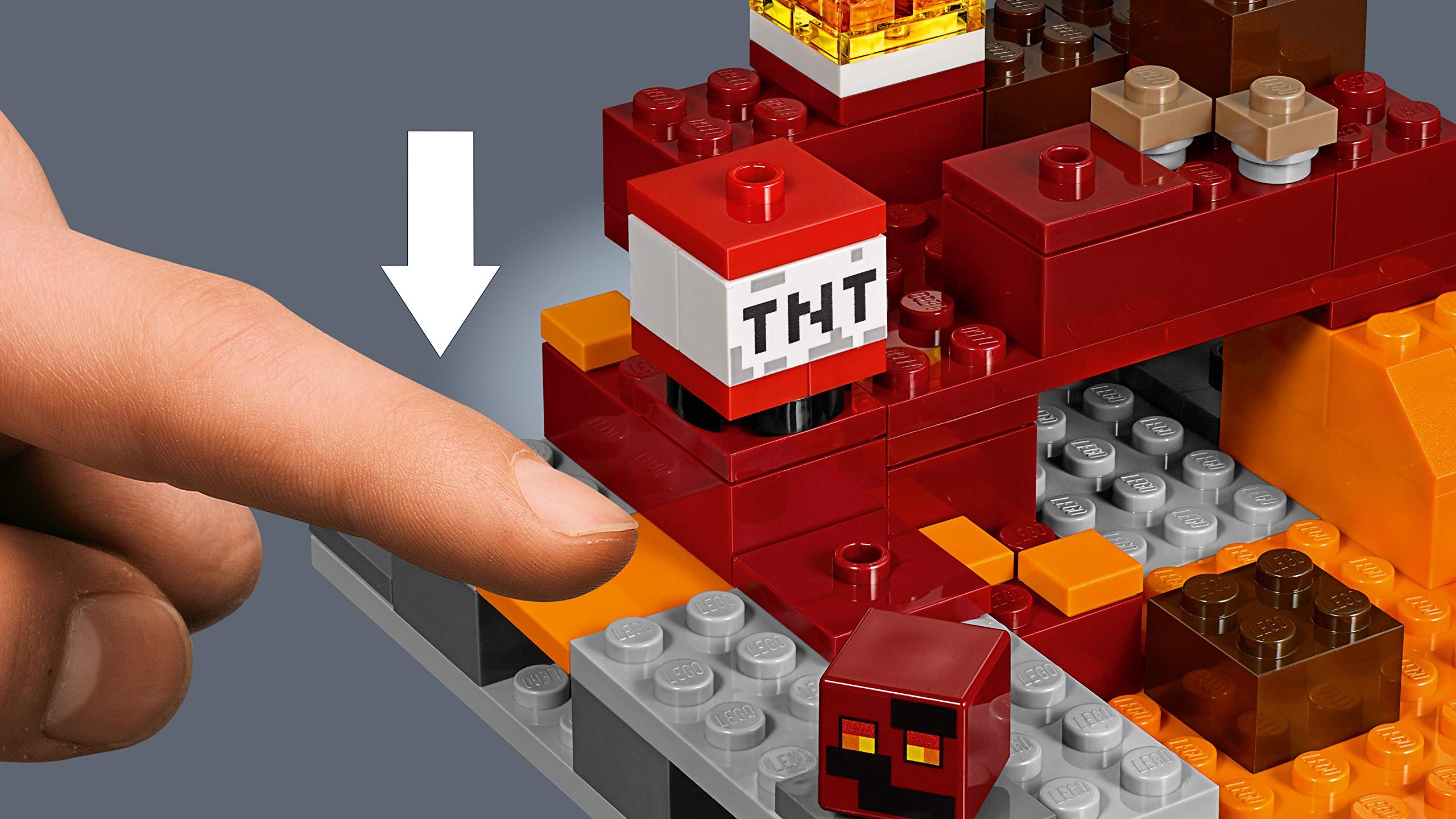 組み立て可能なマッシュルームと炎、マインクラフトTNTブラスト機能を備えたレゴマインクラフトネザーセッティングを組み立てましょう。