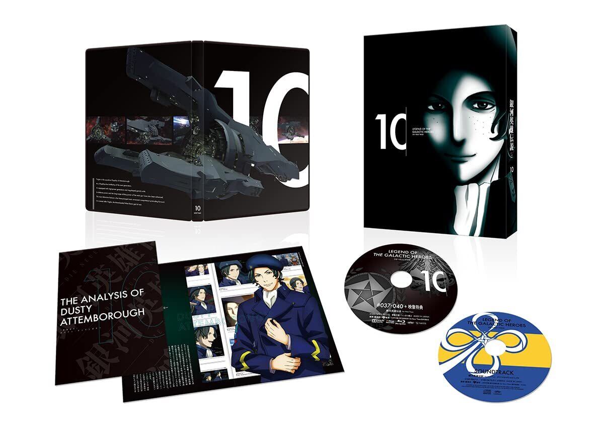キャラクターデザイン・総作画監督の菊地洋子描きおろし三方背BOXに加え、CD<オリジナルサウンドトラック5>など豪華特典が収録された完全数量限定生産! 第10巻スペシャルブックレット「解析読本」では、ダスティ・アッテンボローに焦点を当てる!
