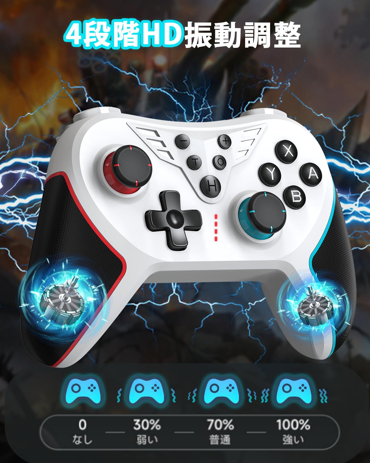 ??【純正品より多機能】純正プロコンにも搭載されていない多機能が搭載されます。マクロ機能など、2つの背面ボタン搭載、自動連射(連射ホールド)機能、Bluetooth5.0接続、6軸ジャイロセンサー搭載、3段階Turbo連射速度、4段階HD振動、LEDライト、低電圧警告機能様々な機能がサポート。ラピッドファイア機能,も搭載されており、射撃速度を5回 / 秒、12回 / 秒、20回 / 秒の3つの段階で調整することができます。これにより、アクションゲームのプレイ性を高めたり、FPSで連射を行う際に、より多くの火力で敵を倒すことができます。6軸ジャイロセンサーと高解像度バイブレーションモーターが組み込まれているため、レースゲームではコントローラーの傾きを感知し、傾きセンサーで操作することで、スムーズなドリフトを実現し、直感的な運動制御を楽しめます。Switchのコントローラーは、振動フィードバックや様々な変化により正確な操作感と、よりリアルなゲーム体験を提供します。